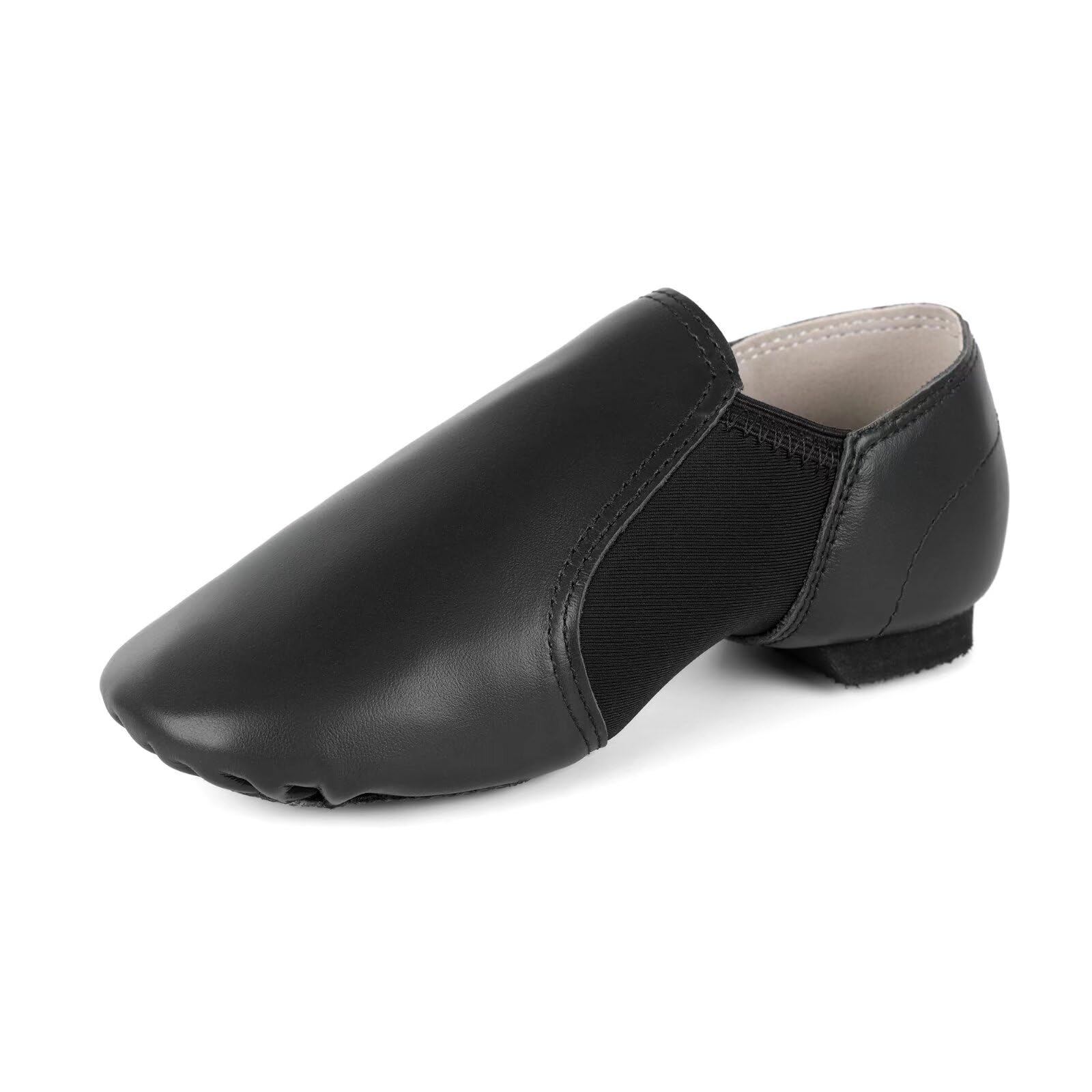 iKelpie Slip On Jazz Dance Shoes - Soft Leather Split Sole, Modern Stage Neoprene Dance Shoes with Rubber Heel, Black i