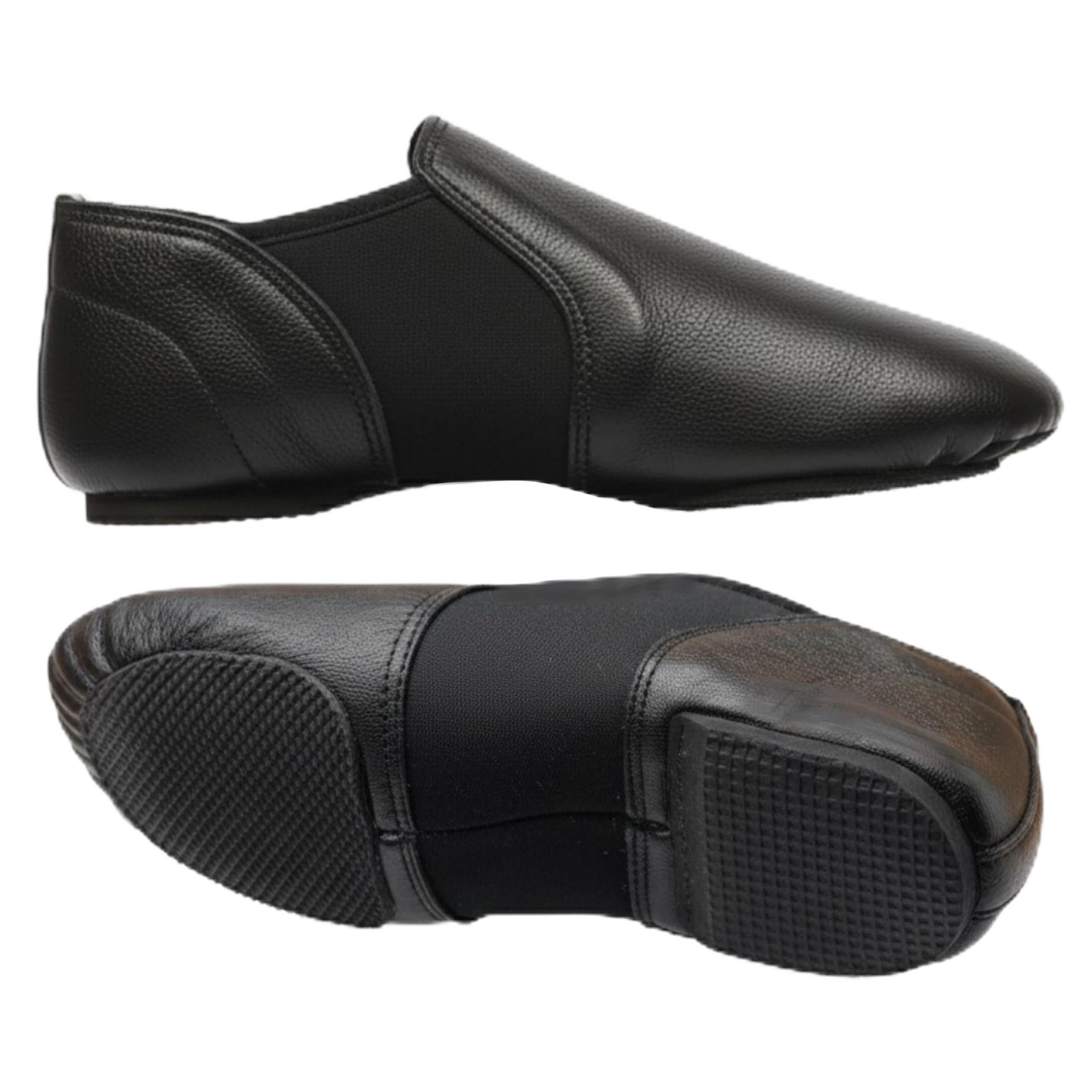 TOROMAX Black Leather Slip On Jazz Dance Shoes for Adults - Modern Stage Rubber Heel Split Sole - Ideal for Irish Dancin